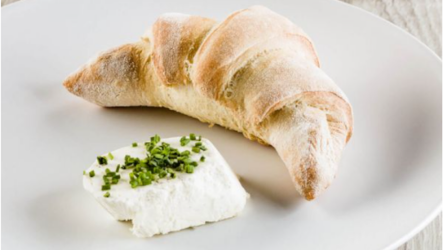 Genießen Sie das Croissant mit frischem Südtiroler Frischkäse und frisch geschnittenen Schnittlauch.