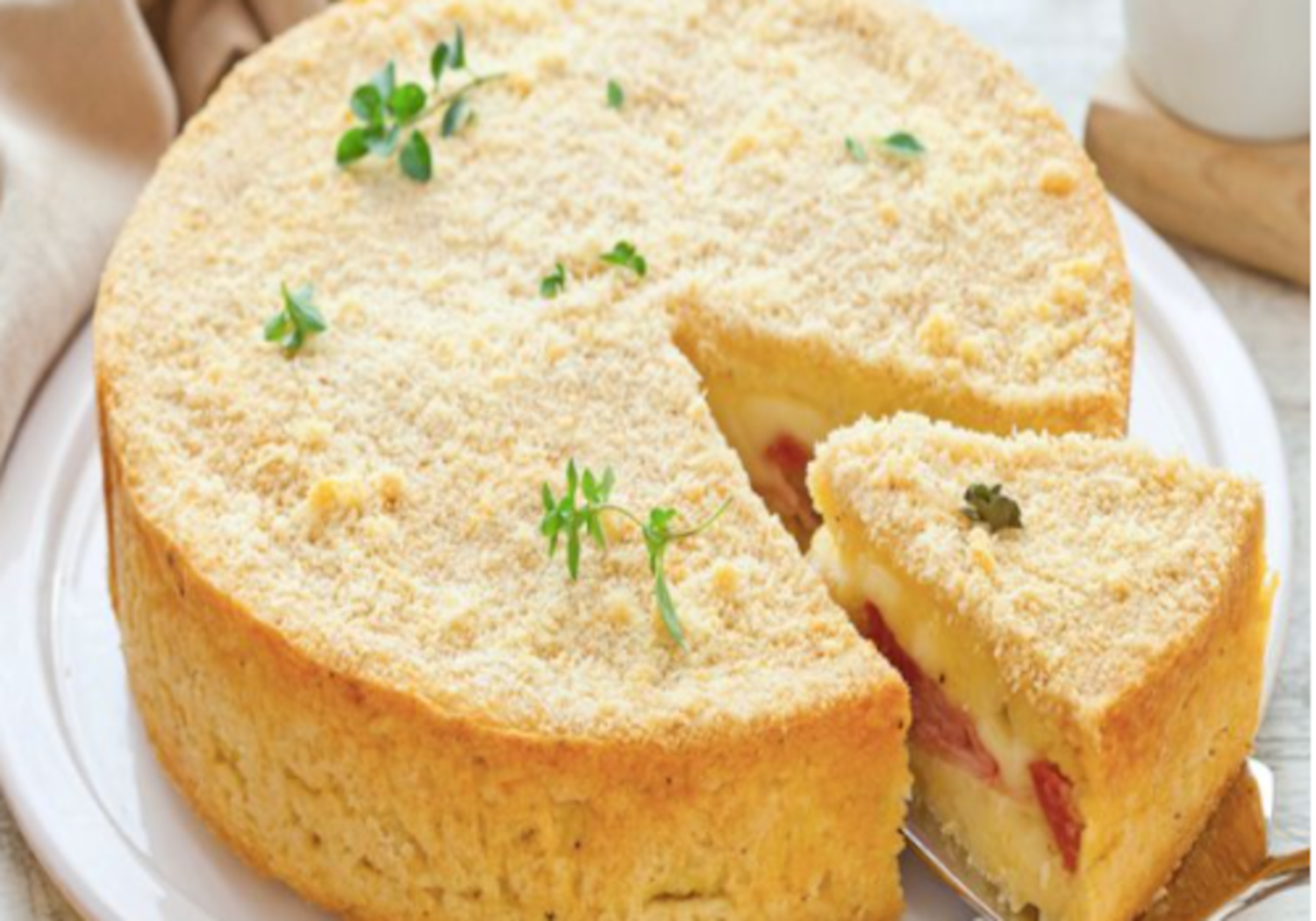 Die Oberfläche des Kuchens mit Parmesan, Semmelbröseln und Butterflocken bestreuen. Im vorgeheizten Ofen bei 200 Grad ca. 50 bis 55 Minuten backen. Aus dem Ofen nehmen, absetzen lassen und servieren.